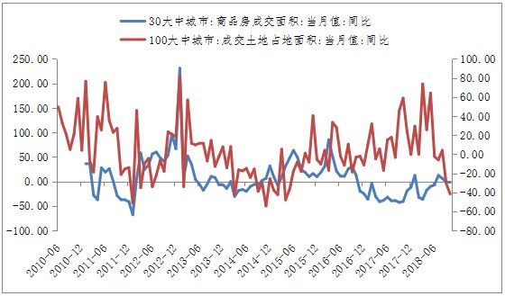 从基本面来看,无论是30大中城市商品房成交面积还是100城市成交土地面积,今年以来增速均显著下降。特别是成交土地面积的跳水,更显示当前地产企业积极收缩战线的态势。