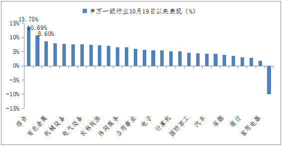 因此,博弈政策反弹,成为当前市场的主要逻辑。据wind数据统计,自10月19日以来,28个申万一级行业除食品饮料外全部上涨,其中,综合、地产、有色等三个行业位居涨幅之首(截至2018-11-08),成为政策底之下表现最好的品种。