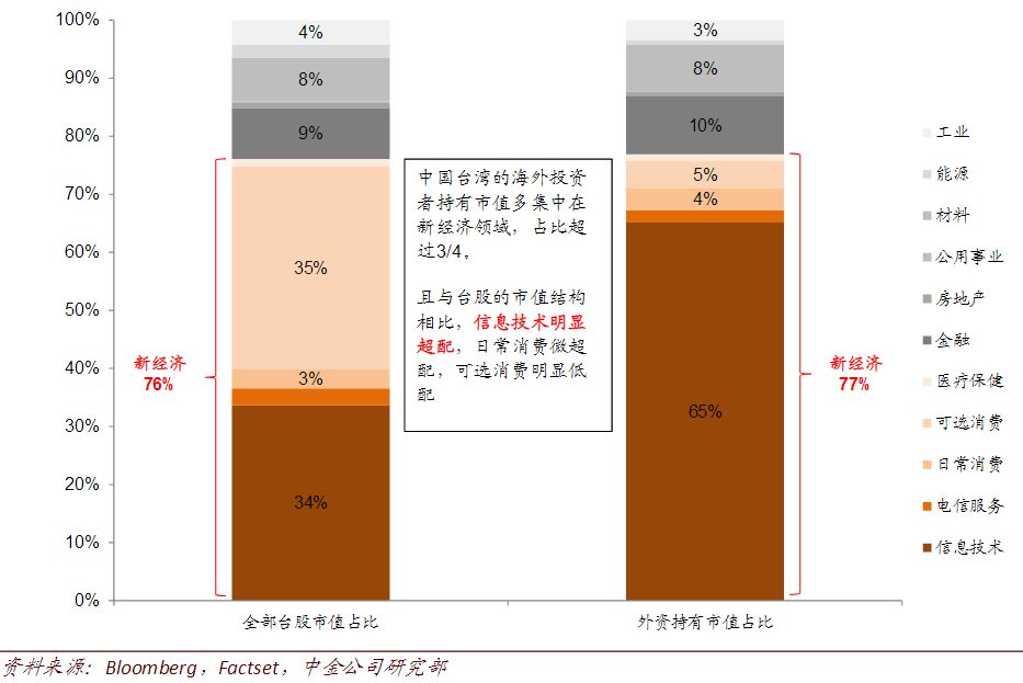 图:中国台湾市场行业分布与外资持股分布对比