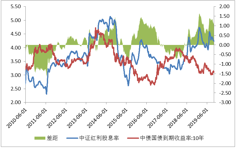 级掌柜之前介绍过一个无脑的股债轮动策略——用中证红利的股息率PK十年期国债的利率,当前者高于后者时,就给予股市资产更高的权重,因为这意味着无脑拿着中证红利,仅“红利收入”就比债券利息赚的多。