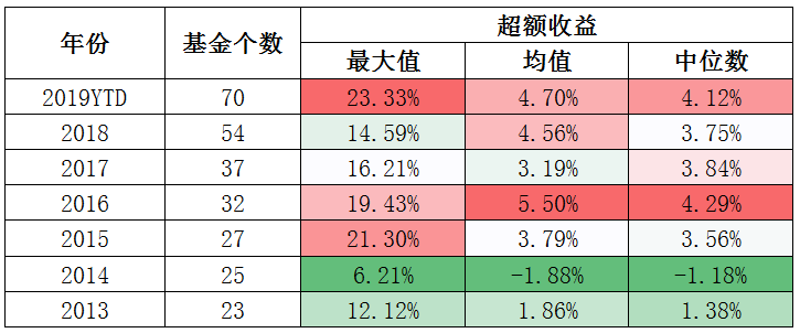 当然,富国的两个个例并不能代表指数增强整体情况。而整体来看,今年也是增强收益较高的年份之一。
