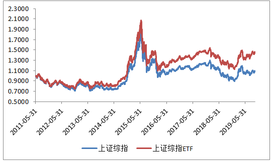当然,上证综指ETF中包含部分打新收益无法剔除,但几个收益率对比也同样说明了,上证综指在考虑了分红之后、或者说产品化之后的业绩,并没有市场所流传的那么不佳。