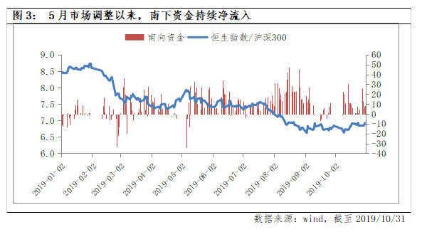 整体来说,港股短期受中美贸易和本地社会事件影响较大,两者的改善对于港股来说是较为有利的条件,同时,相对于A股,港股受通胀上升的影响更小,叠加当前人民币汇率趋稳、AH溢价高位等因素,港股配置的性价比提升。