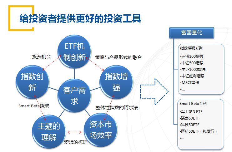 所以我们在做ETF的时候,思考的首要问题是指数编制,解决客户投资回报率的问题,解决客户的战略和战术资产配置之间的矛盾。