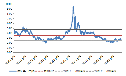图:中证军工指数历史PB(lf)