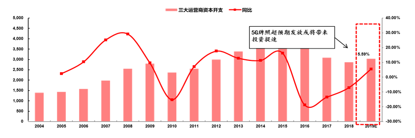 运营商们这几年就在奋力盖基站,资本开支大幅提升。而建造基站需要电子元器件等,从而推升了电子产业链的景气度。
