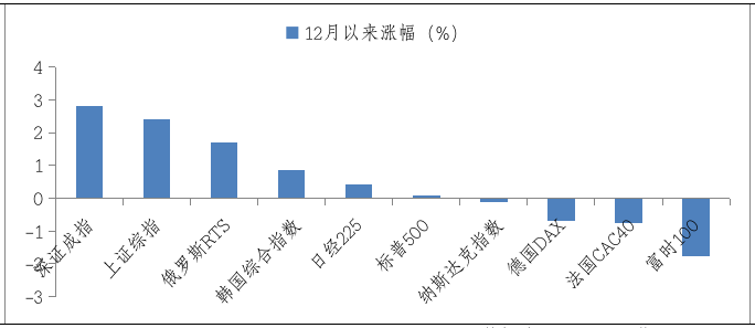 对于股市,主要受内部影响,美联储政策溢出效应减弱。12月以来,“科技股大力,周期股蓄力”,外资也开启“买买买”模式,叠加多项经济数据的改善,A股领涨全球股市。短期中美贸易谈判与中央经济会议将成为市场焦点,同时基于专项债提前发放与5G产业链迎来的基础设施建设潮与换机潮,一轮库存周期或已开启,A股中长期配置价值凸显。