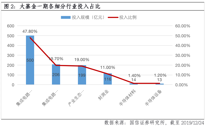 ? 第三,大基金一期投资的目的是完成产业布局,投入资金主要集中在集成电路制造与设计领域,二期更关注集成电路产业链的联动发展,在持续关注制造、封测领域的同时,重点将向半导体上游设备和材料倾斜。
