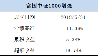 表:富国中证1000指数增强成立以来超额收益为16.74%