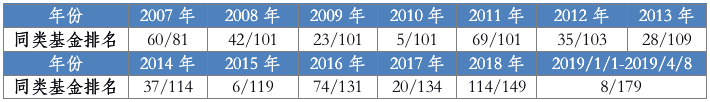 注:①同类排名的类别为普通偏股型基金(A类);②2006年排名数据缺失;③排名根据年度净值增长率