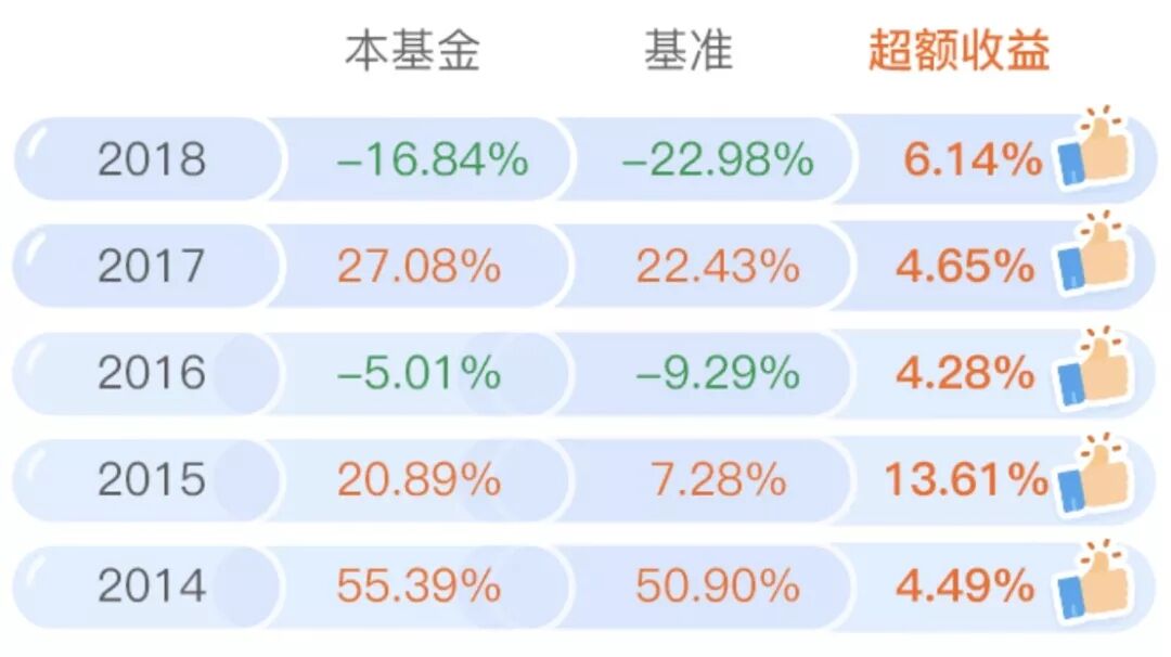 2、近五年来,本基金较业绩基准③每年都能获得一定超额收益。