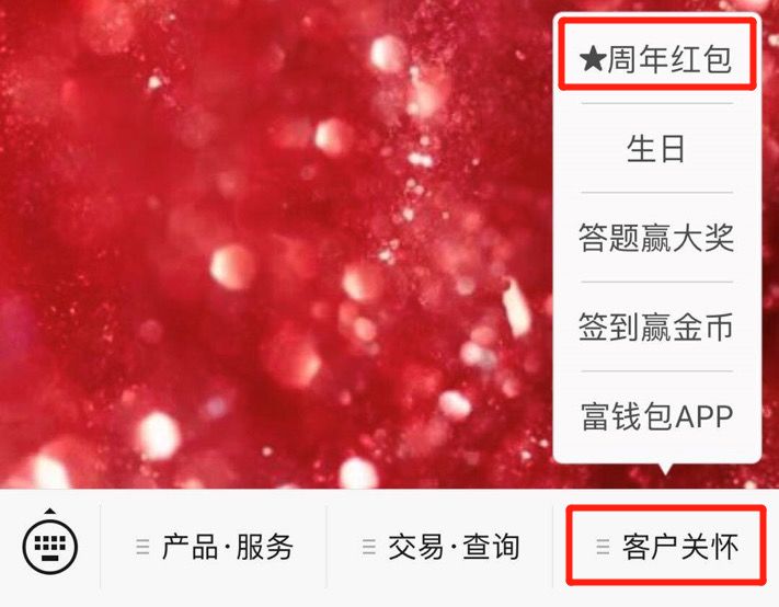 首次通过菜单栏—客户关怀—周年红包入口参与活动