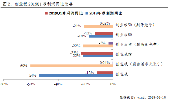 创业板一季报预告披露完毕,整体净利润同比增速为-12%,相比2018年-54%大幅改善;若剔除温乐光坚宁等权重,创业板一季报盈利增速-0.04%已经回升至零轴附近。综合同比低基数的影响、融资环境改善、商誉减值冲击的改善,往后看创业板指盈利增速大概率逐季回暖,预计回到历史内生增速均值15%-20%之间。而回顾上一次2013Q1创业板盈利见底后,开启了创业板大牛市行情,预计本轮创业板业绩见底回升,也有望在牛市二阶段迎来靓眼表现。
