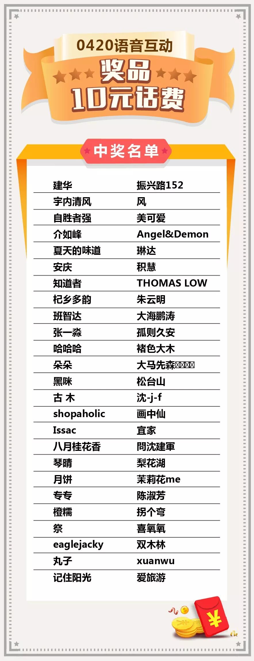 话费将于4月26日(本周五之前)充值到中奖客官后台预留的手机号码中,请各位客官耐心等待~