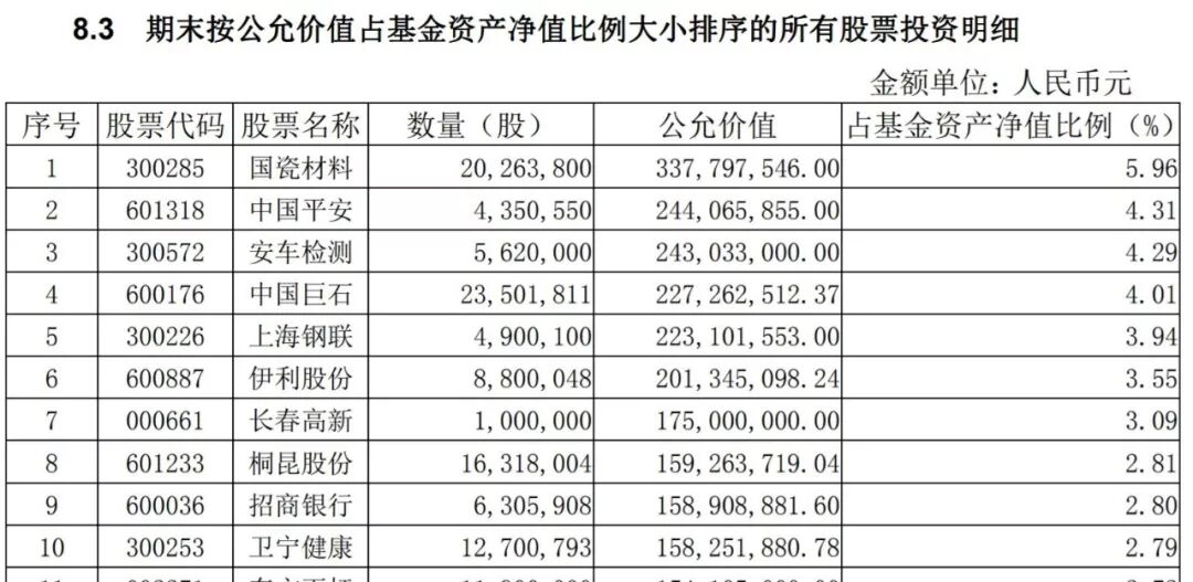 年初至今,前三大重仓股,国瓷材料、中国平安涨幅在45%以上,而安车检测几乎翻倍。