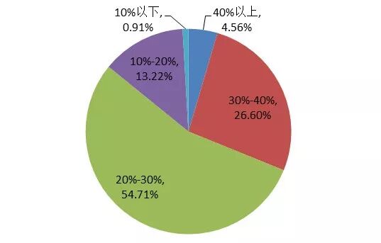 如果再将基金业绩细分成多个区间进行统计发现,一半以上的基金收益都集中在20%-30%,另有超过四分之一的基金收益处在30%-40%的区间、接近5%的基金收益超过40%!