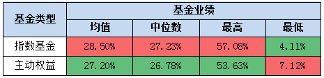 表:指数基金与主动权益基金业绩对比