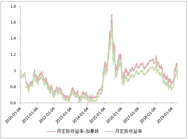 图:每月定投和每月+暴跌定投收益对比