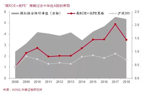 选取过去三年ROE均高于20%、且PE小于过去三年ROE均值的公司,等权配置、年初调仓。这样的“高ROE+低PE”策略,在过去十年收益率达到246%,相对沪深300 66%的收益,取得了180%的超额回报。