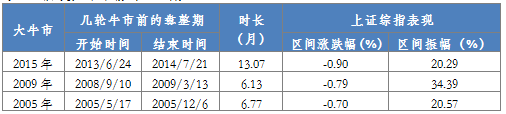 表1:历次大牛市前的盘整期