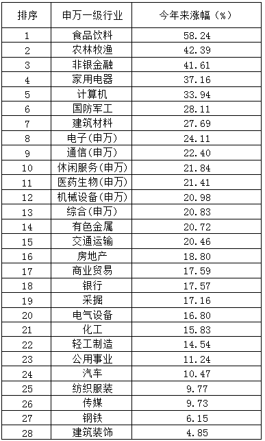表现上来看,食品饮料涨幅一骑绝尘。去年年底至今,申万食品饮料涨了58.24%,是28个行业中涨幅最多的~