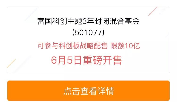 现在,富国科创主题3年封闭混合基金来啦,同样目标科创板,同样是限购10亿,想买的可以下手啦!