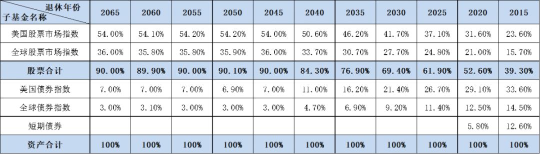 表:先锋养老基金配置细节