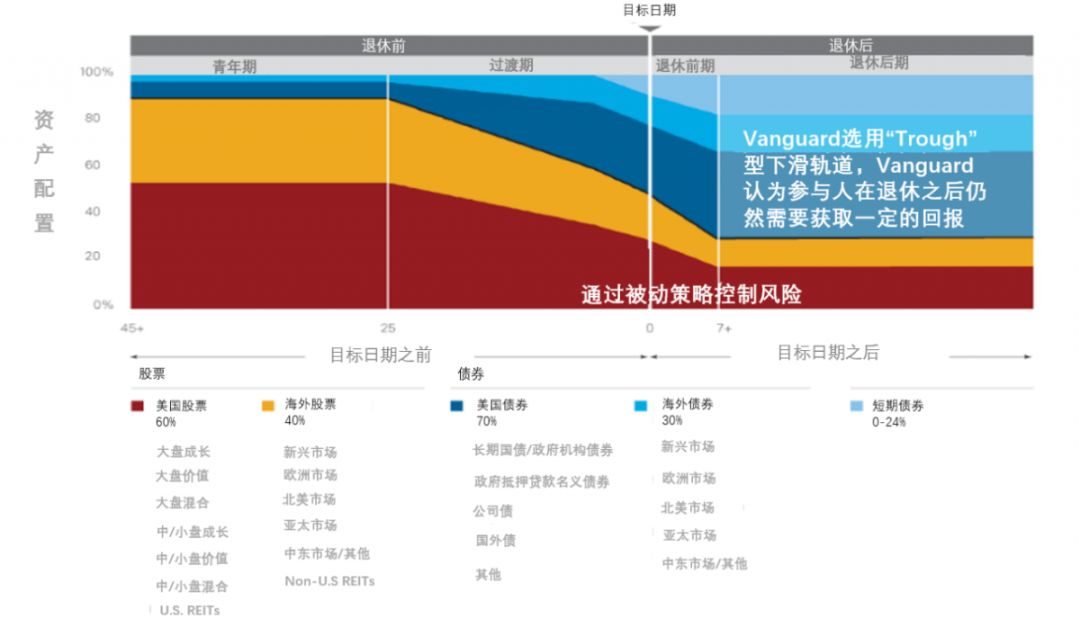 ●在退休前5年开始,加入通胀保护债券,主要为了降低通胀风险。