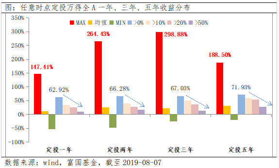 ★不同时间维度定投收益率>0%的概率均超过60%,最高为定投五年71.93%;
