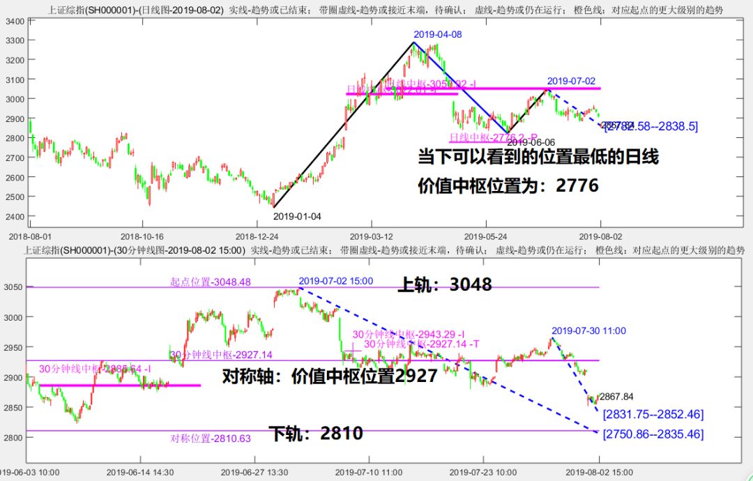从价值中枢的视角看,7月初以来市场在2927附近形成了一个较长的价值中枢,根据价值中枢的对称原则,以7月初的高点3048为上轨,2927为对称轴,可得到重要的支撑位在2810附近。