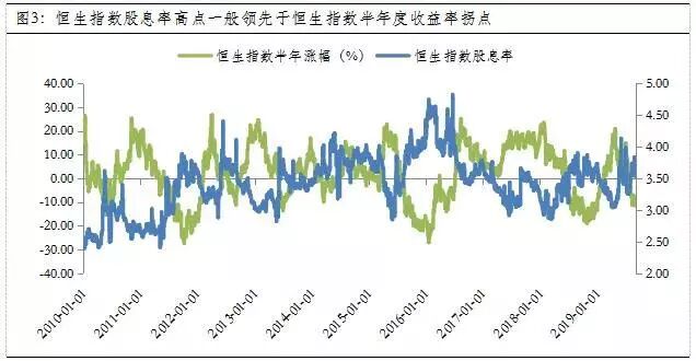 截至2019-09-05,恒生指数股息率已经达到3.53%,不仅高于内地市场10年期国债收益率3.02%的水平,更是大幅高于沪深300指数2.44%的股息率。这意味着,较高的股息率吸引之下,南下机构配置港股的热有望被逐渐释放出来。另外,从历史来看,恒生指数股息率的高点则往往意味着半年持有期回报率的拐点。