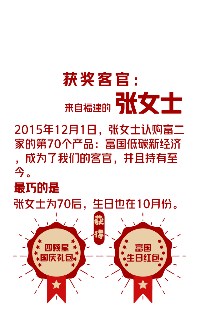 2.获得五星/四星/三星国庆礼包的三位客官,富二明天将会用021-20361999的号码致电您,和您确认接收礼包的地址,请客官们千万要留意接听哦~