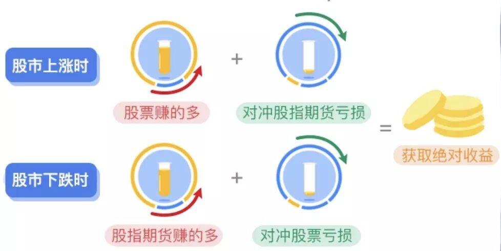 指的是投资者在股指期货交易市场和股票交易市场上同时进行数量相等、方向相反的交易操作依靠两个交易市场的盈亏来互相抵消,以此试图获取与股票市场整体涨跌无关的绝对收益。↓↓