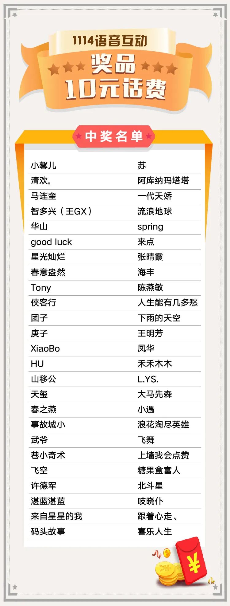 话费将于11月20日(本周五之前)充值到中奖客官后台预留的手机号码中,请各位客官耐心等待~