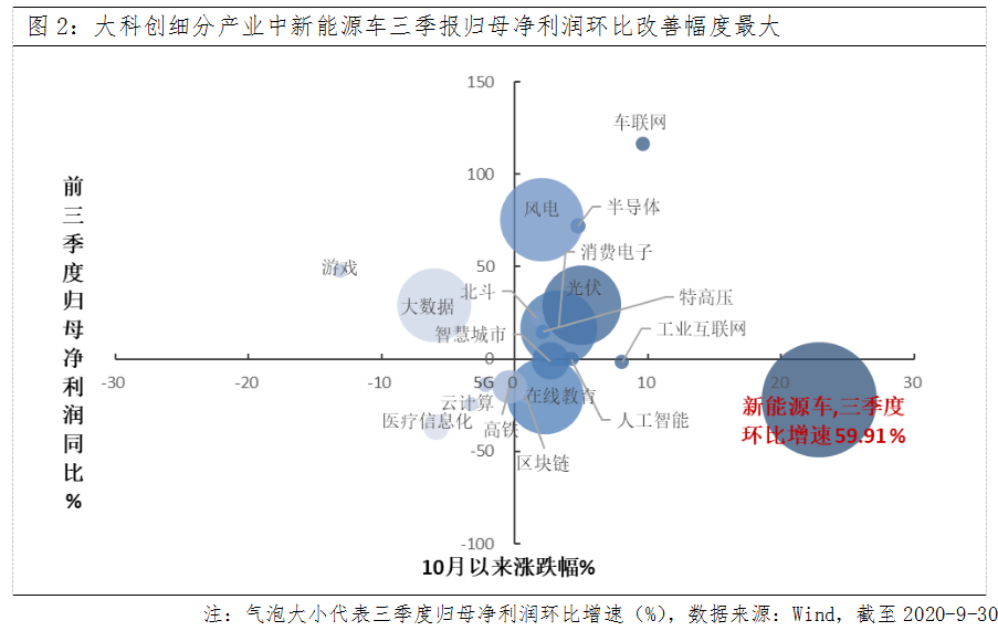 两周内,新能源车迎三份政策催化,对近期市场表现形成支撑。估值而言,中证新能源车PE(TTM)估值为142.61倍,分位数达98.21%,处于高估值区间。但考虑新能源车长期成长性十足,三季度归母净利润改善幅度较大,投资者不妨在新能源车回调时持续关注。