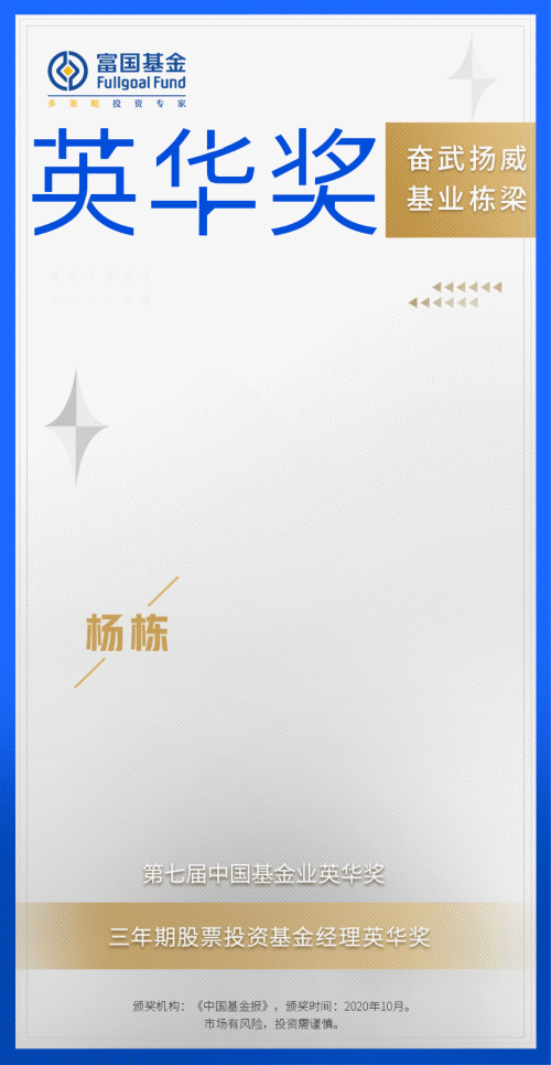 在第七届中国基金业英华奖榜单上,杨栋榜上有名,荣获“三年期股票投资基金经理英华奖”。