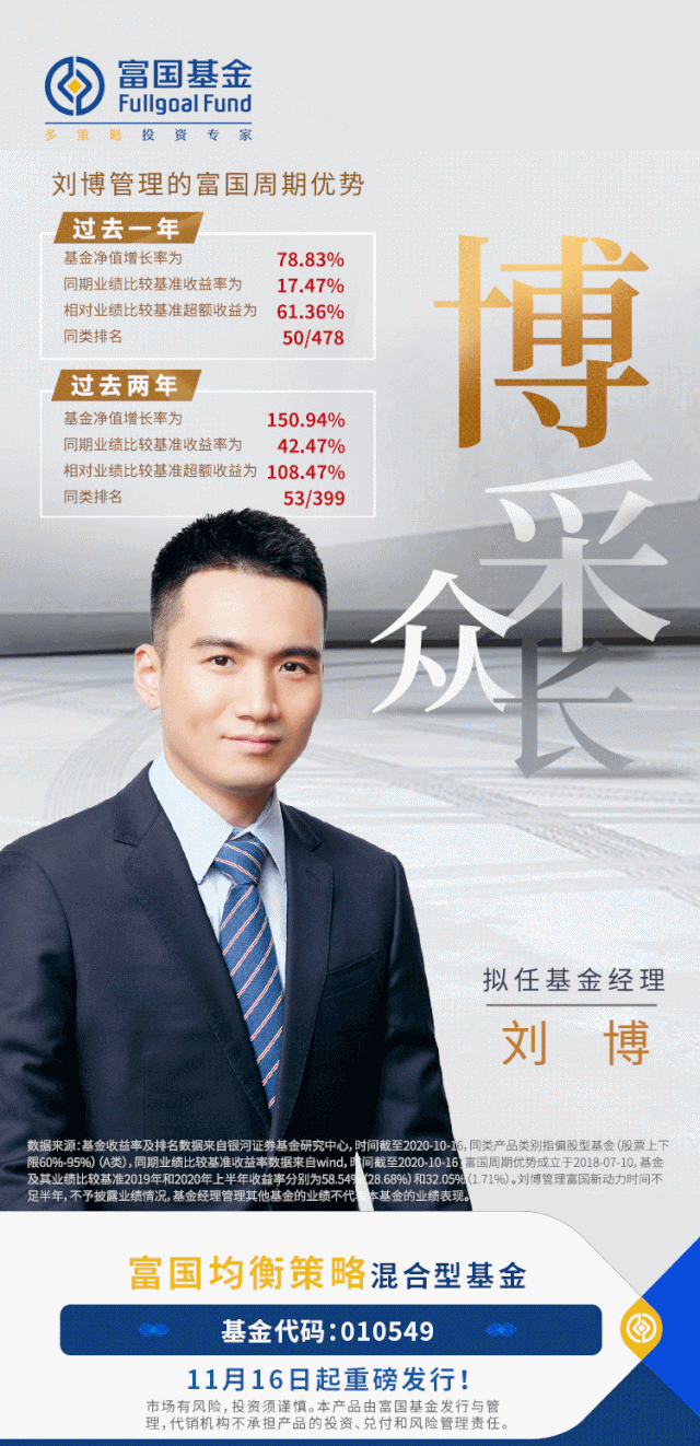 魅力值打满的刘博,将在11月16日发行一只新产品——富国均衡策略混合(010549),富二知道下周客官要经历“双十一”了,如果购物车里还没有添满~ 或许可以把刘博加入购物车看看哦~