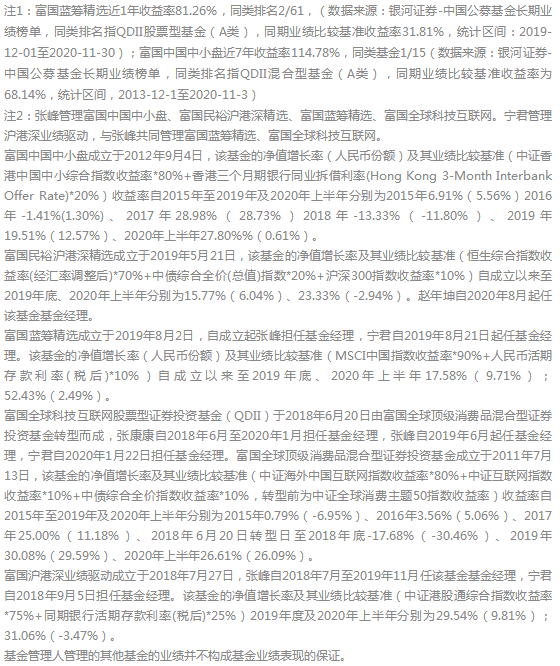 上面列举的2个QDII产品中,其中富国蓝筹精选由张峰与宁君联手执掌,富国中国中小盘基金由张峰单独管理。