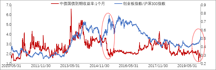 ■→当下并没有标准指标可用于监测成长股,本文引用创业板指走势和沪深300指数走势近似代替成长股和价值股的发展走势。若两者比值上升,可认为此时成长股风格占优。
