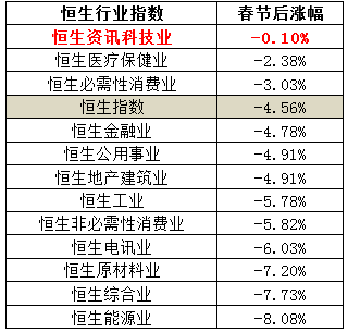 我们借鉴港股早跌早超生的经验,发现恒生主要行业指数中,相对较为抗跌的是受疫情影响较小的科技、医疗、和必须消费,而那些和经济相关性较高的周期类指数,比如能源类、原材料等等,相对大盘跌幅较高。