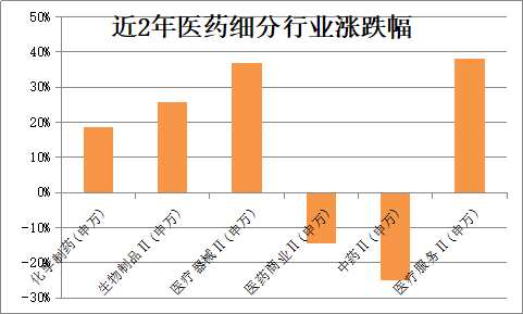 首先,医药子行业的差别大,不同的细分行业,近两年涨跌幅差异也较大。
