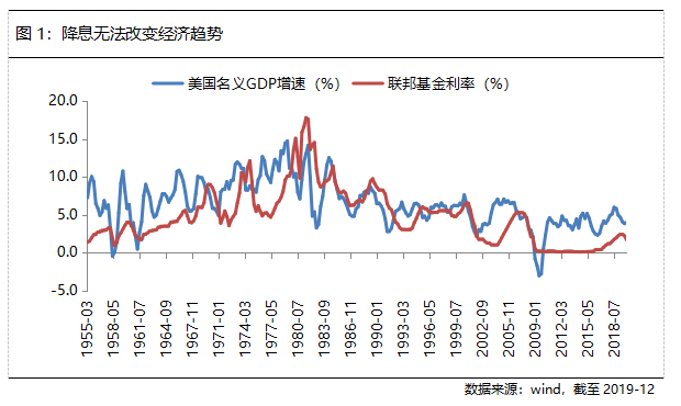 上世纪80年代以来,美国步入了长达40年的经济下行期。在这40年间,尽管美联储持续大幅降息,却只能刺激美国经济的短暂复苏,而无法改变美国经济的放缓趋势。从本质上来说,经济增长是由技术进步、资本积累和劳动共同推动,货币政策只能影响节奏,但不能改变趋势。