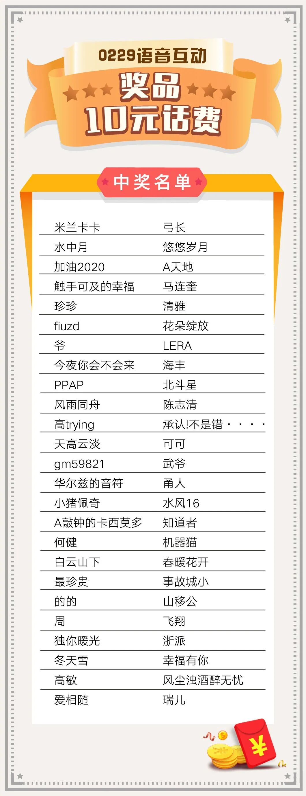 话费将于3月6日(本周五之前)充值到中奖客官后台预留的手机号码中,请各位客官耐心等待~