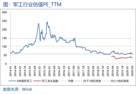 军工行业估值目前处于历史较低水平。