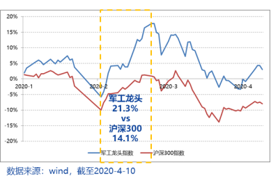 图:今年以来军工龙头指数走势与沪深300指数对比