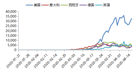从新增确诊病例数来看,欧美疫情已开始出现拐点。