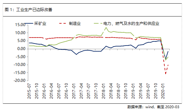 虽然1季度实际GDP增速创下历史低位,但3月经济数据较1-2月明显改善,表明中国经济已开始修复。从供给端来看,3月工业增加值同比下降1.1%,降幅较1-2月收窄12.4个百分点。