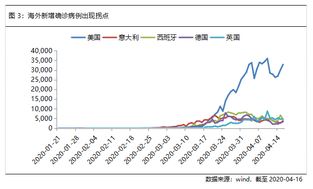在国内疫情得到有效控制的同时,海外疫情仍在蔓延。然而,从新增确诊病例数来看,欧美疫情已开始出现拐点。在此基础上,昨日特朗普公布了美国经济重新开放的指引,允许各州分阶段重新开放。今日,默克尔也宣布德国将逐步解除抗疫防控措施。欧美经济如果顺利重启,则有望明显减轻我国面临的外需压力。