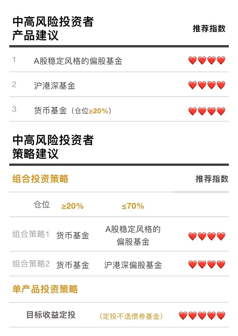 那我们再来看看针对中高风险客官,又有什么样的资产配置建议: