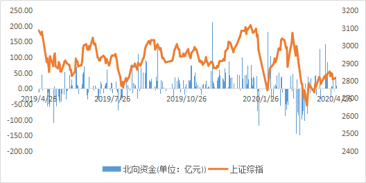2019年4月以来,北上资金在A股调整期,在2700点以上的区间,流入速度加快。